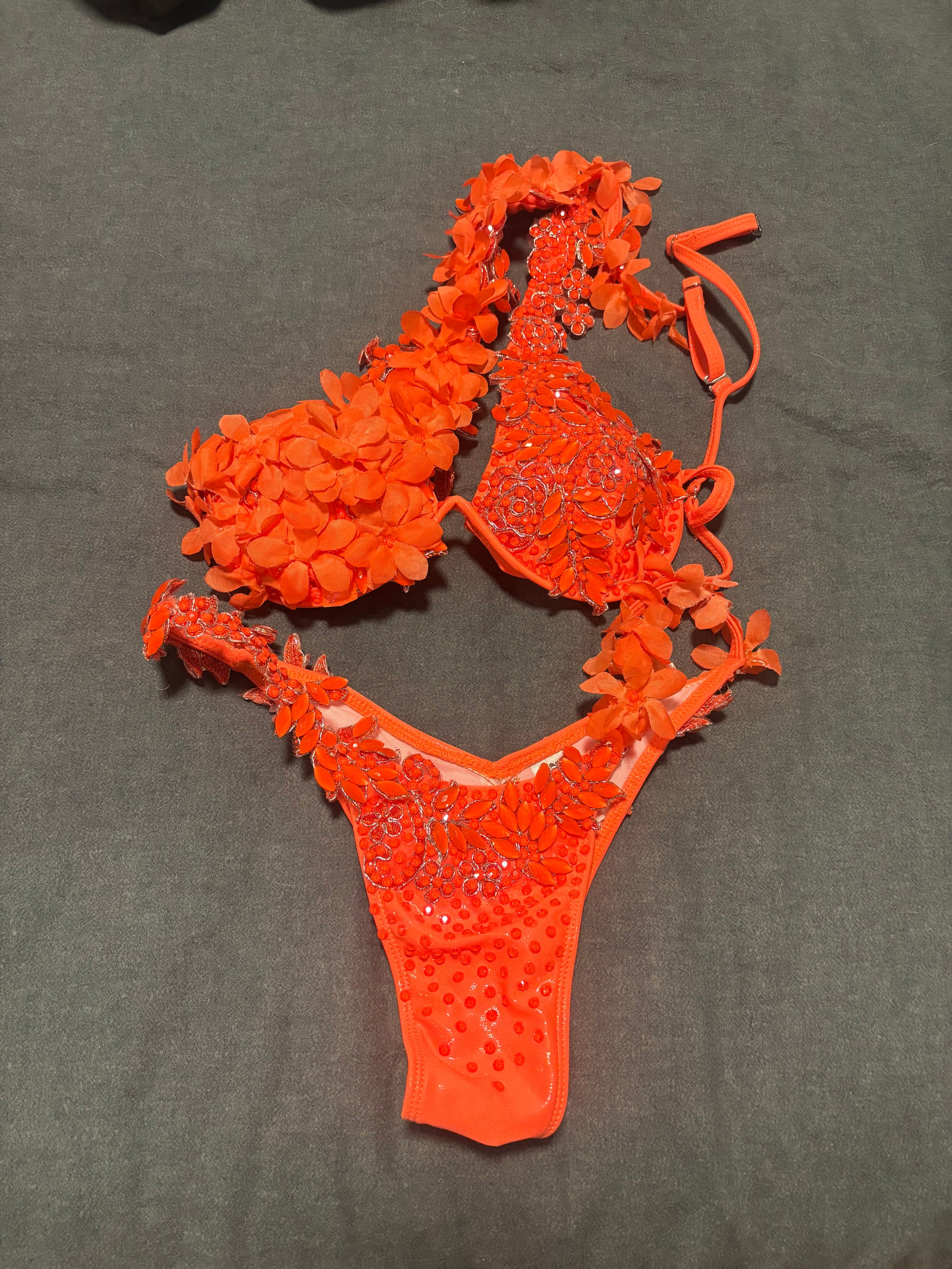 A reminder these bikinis are used, so there may already be some minor missing gems on the piece when you receive it. If there are further gems that fall off we ask that you place them back in the box if possible.