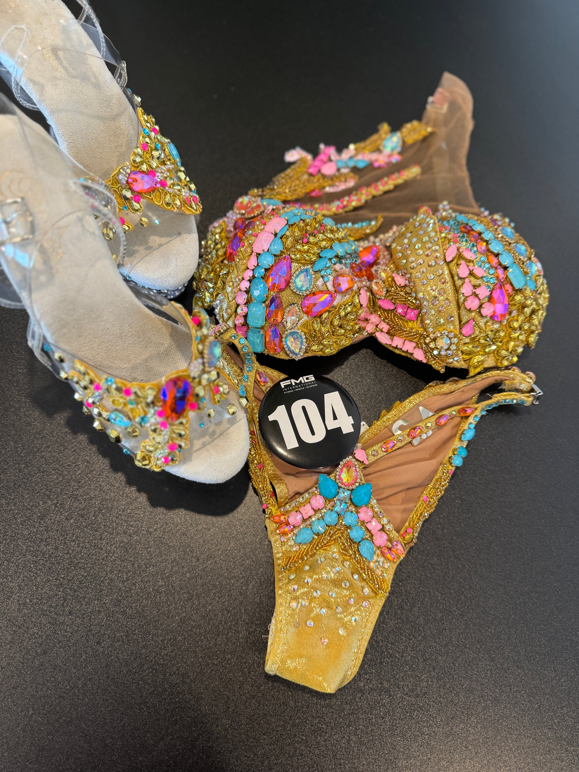 A reminder these bikinis are used, so there may already be some minor missing gems on the piece when you receive it. If there are further gems that fall off we ask that you place them back in the box if possible.