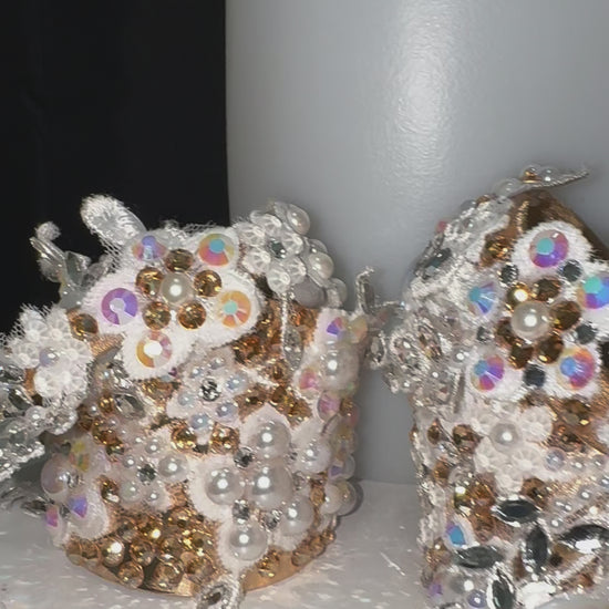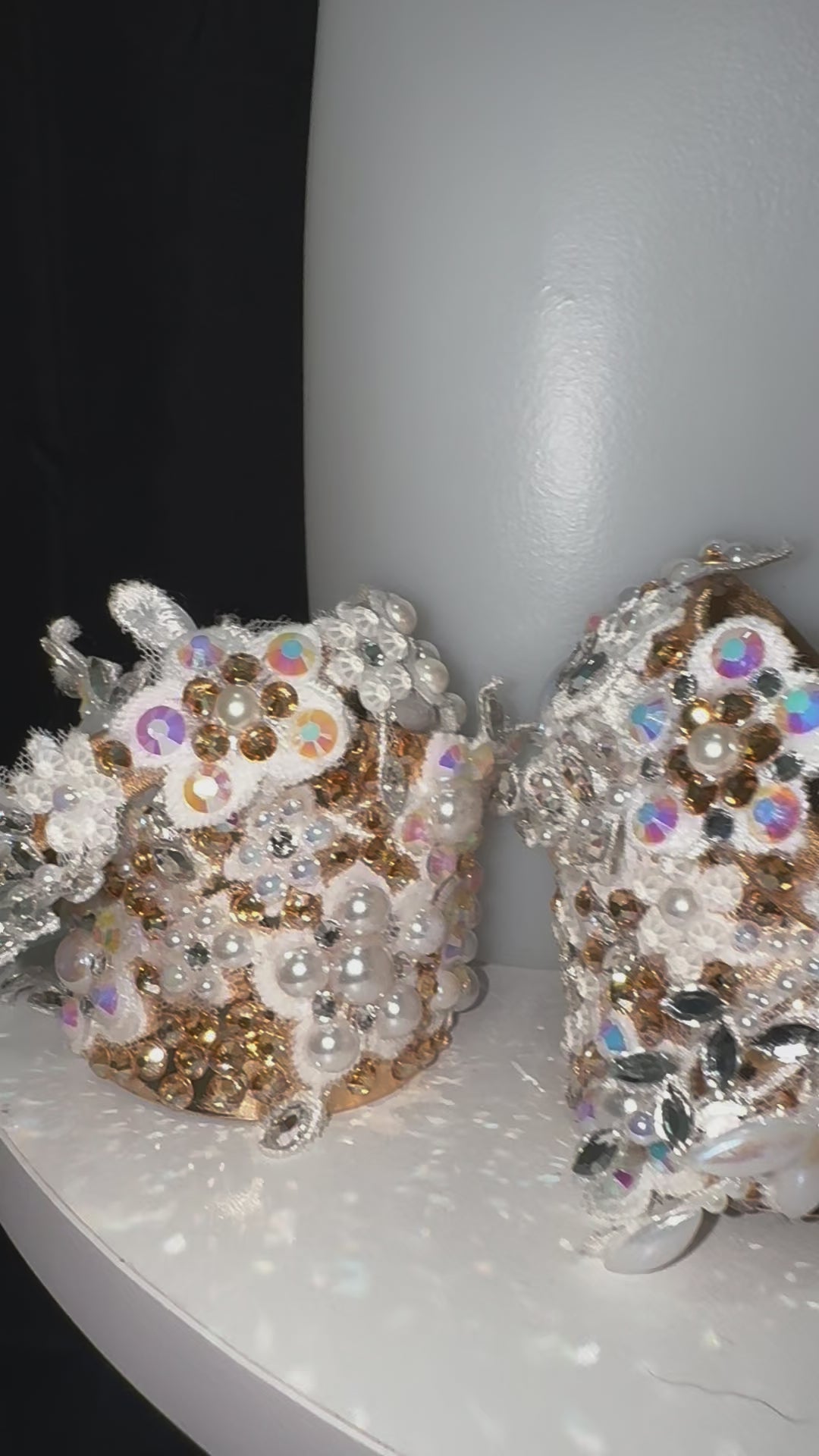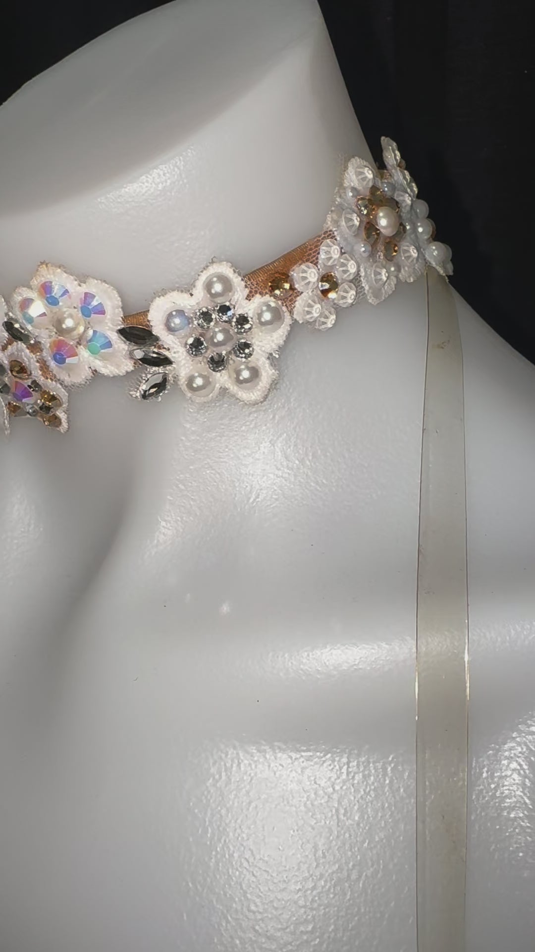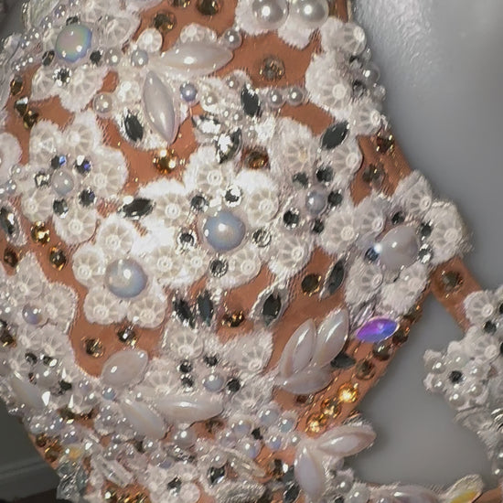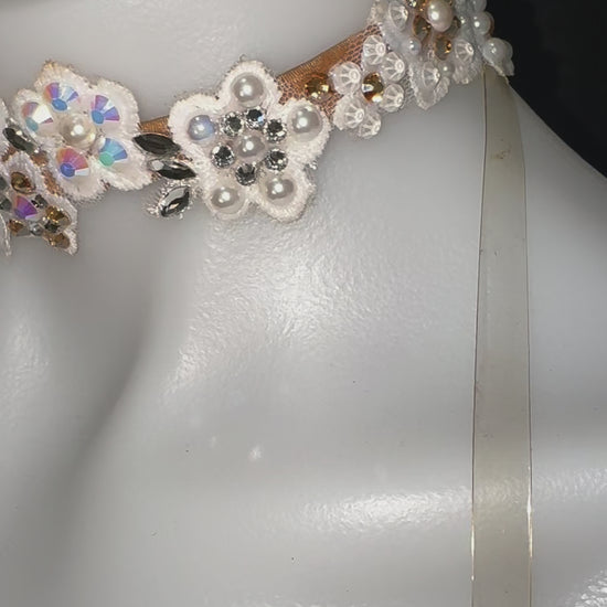 This bikini was designed to show the illusion of the white embellishments to POP on top of the skin colours base. All accessories shown are also included.